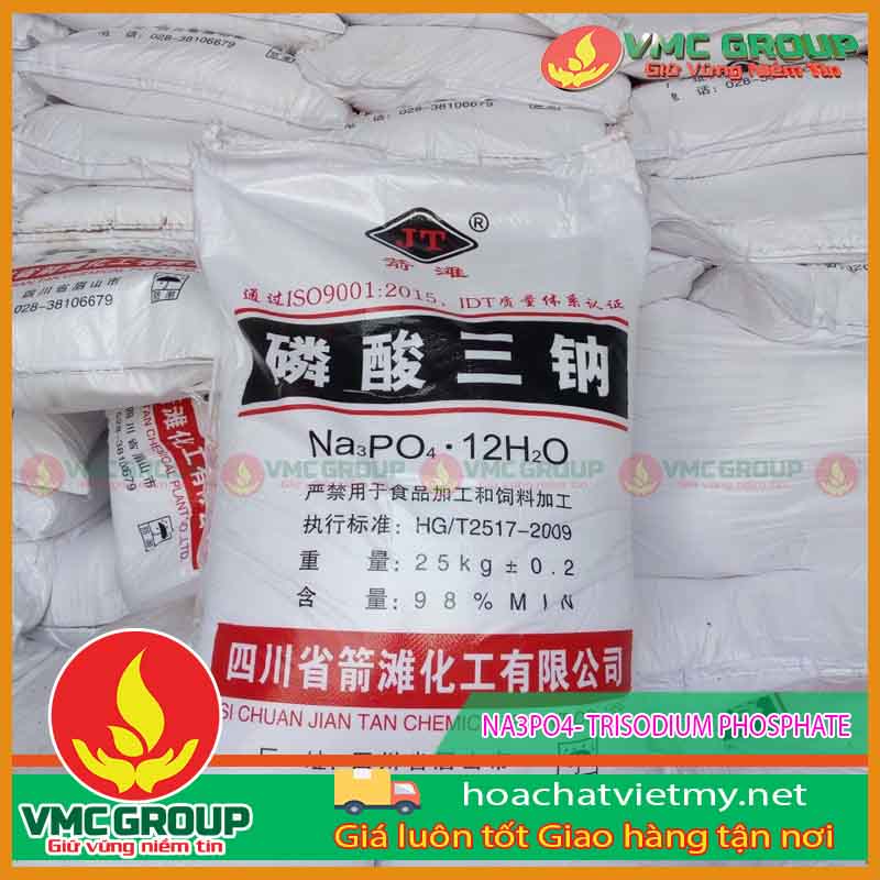 Hóa chất Việt Mỹ chuyên nhập khẩu và phân phối NA3PO4- TRISODIUM PHOSPHATE chất lượng cao với mức giá cạnh tranh. Sản phẩm được dùng phổ biến trong các lĩnh vực như làm sạch, tẩy cặn dầu mỡ, xử lý nồi hơi, sản xuất gốm sứ,…