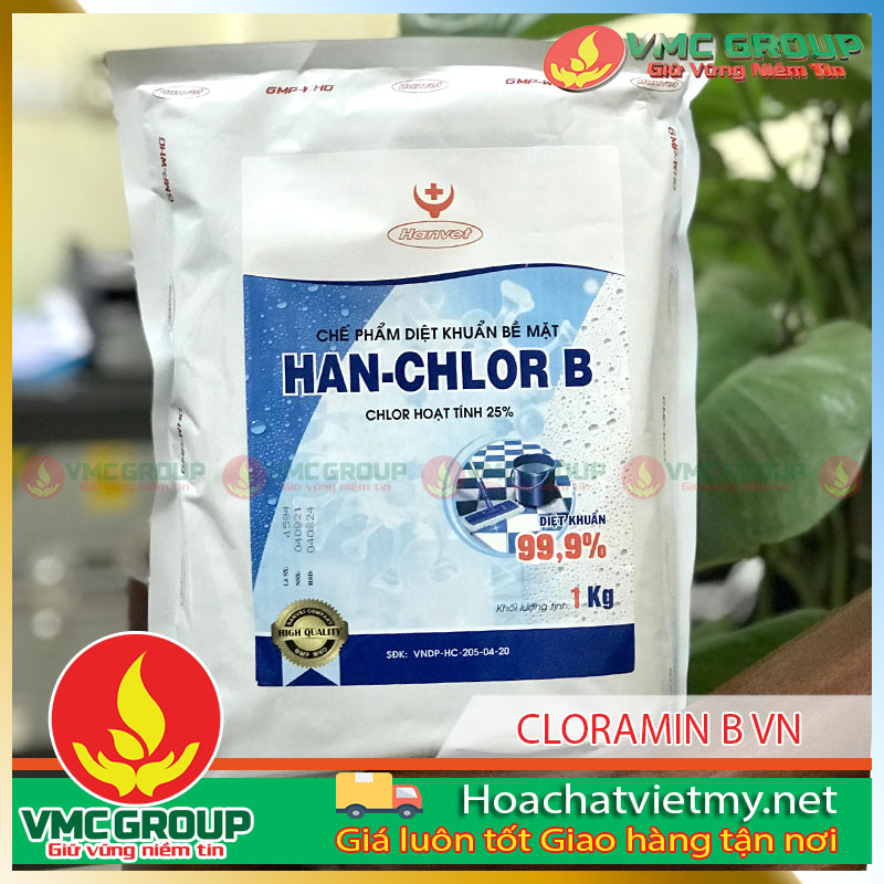 Hiện Việt Nam đã sản xuất được các loại Cloramin B gói 1kg, thùng 25kg chất lượng không thua kém gì hàng trung quốc và hàng séc với mức giá khá cạnh tranh và đáng tin cậy